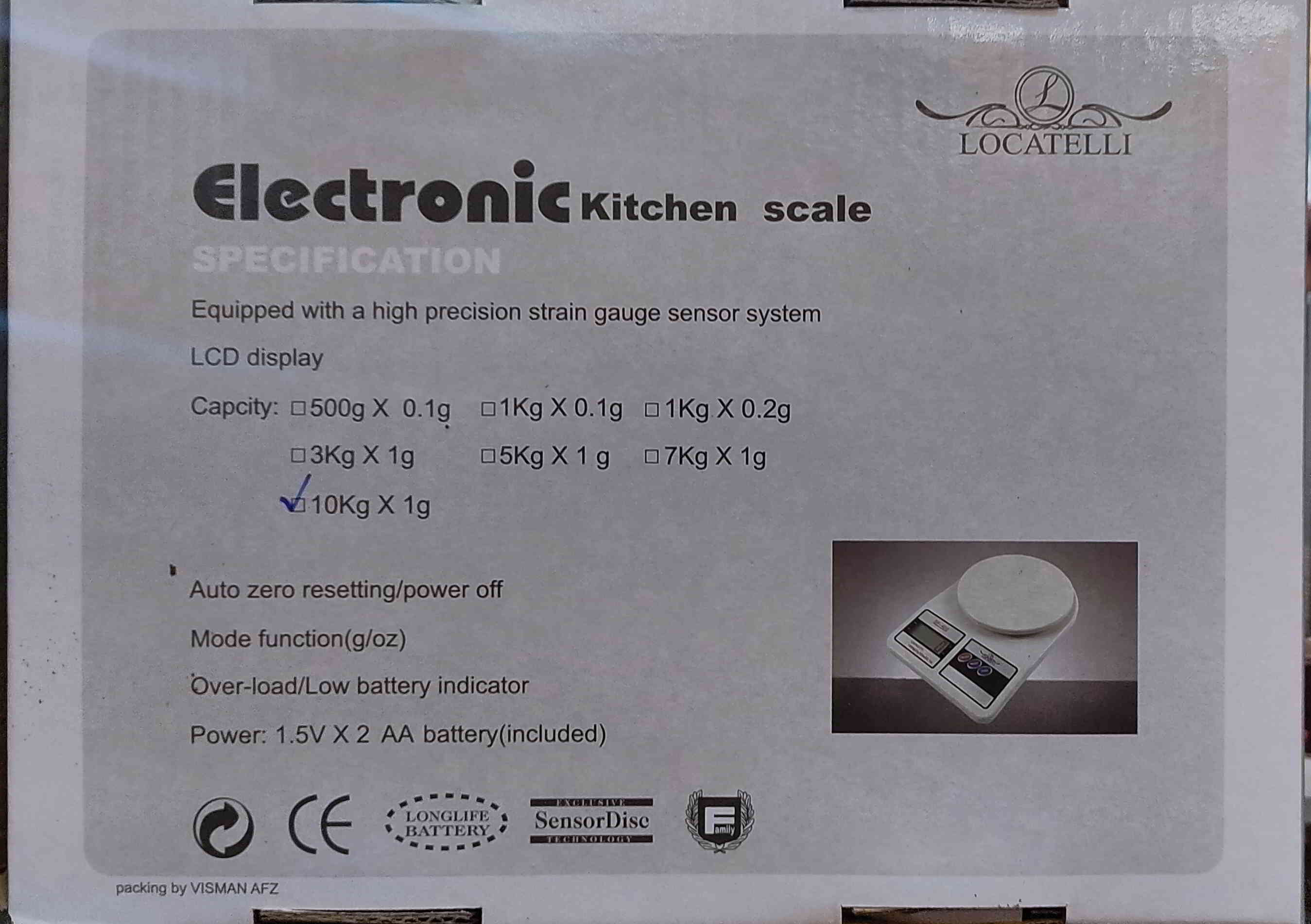 حداکثر وزن قابل اندازه گیری : 10 کیلوگرم _ دقت اندازه گیری: 1 گرم _ دارای نمایشگر LCD