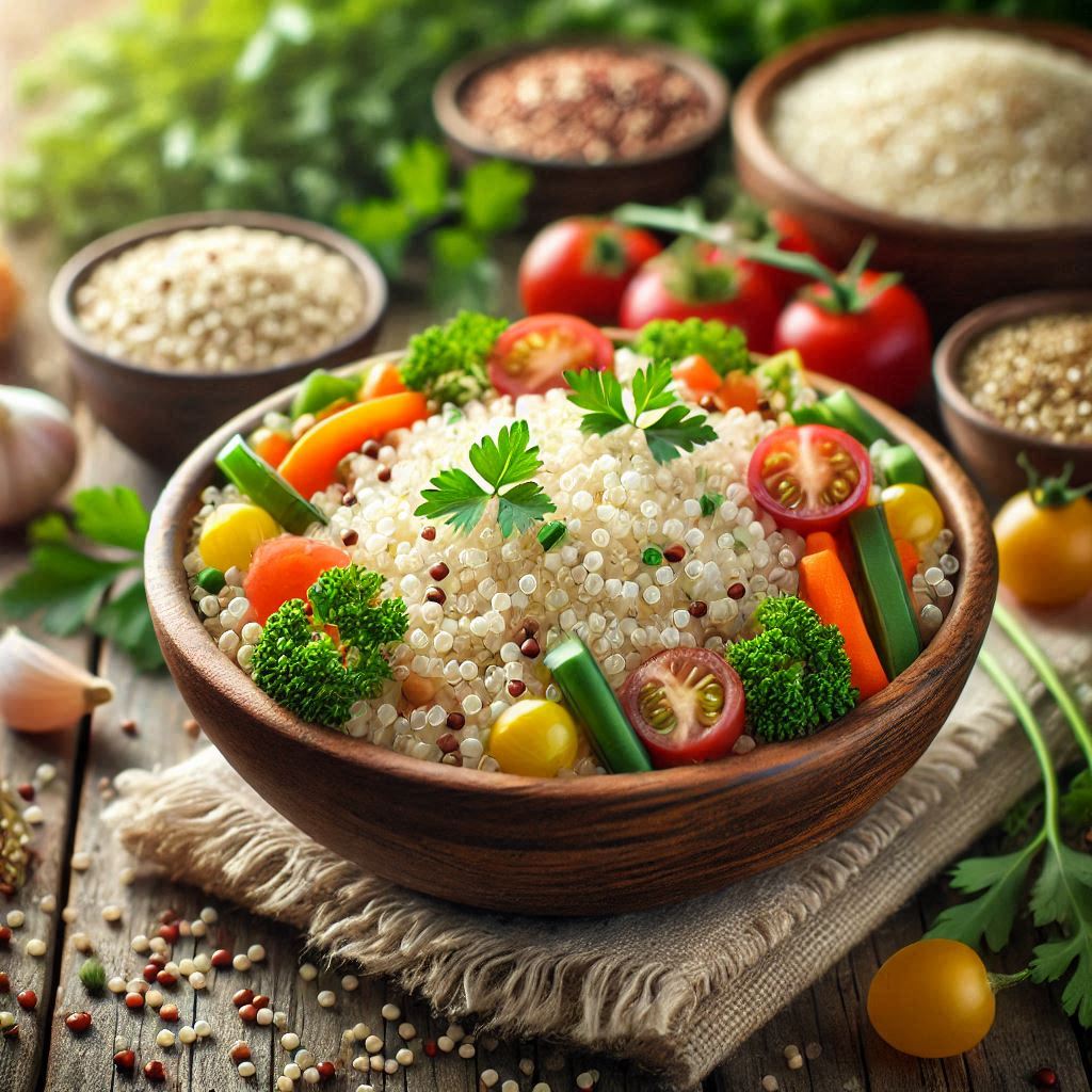 سرشار از پروتین، آنتی اکسیدان ها، ویتامین ها و مواد مغذی بیشتری نسبت به دانه های دیگر است. فاقد گلوتن و کم کالری _ کشت گیاه کینوا در آمریکای جنوبی است و دارای سه نوع مختلف در سه رنگ متفاوت است. رایجترین رنگهای کینوا در سه رنگ سفید، قرمز و سیاه میباشد. کینوا غله برتر گیاهخواران است. کینوا سفید منبع غنی از آهن، فسفر، ویتامین B،امگا ۳، منیزیم، کلسیم و لیزین (یکی از ضروریترین اسید آمینهٔ اصلی) است. کینوا گیاهی است که برای متعادل کردن قند خون و برای کنترل دیابت بسیار سودمند میباشد.